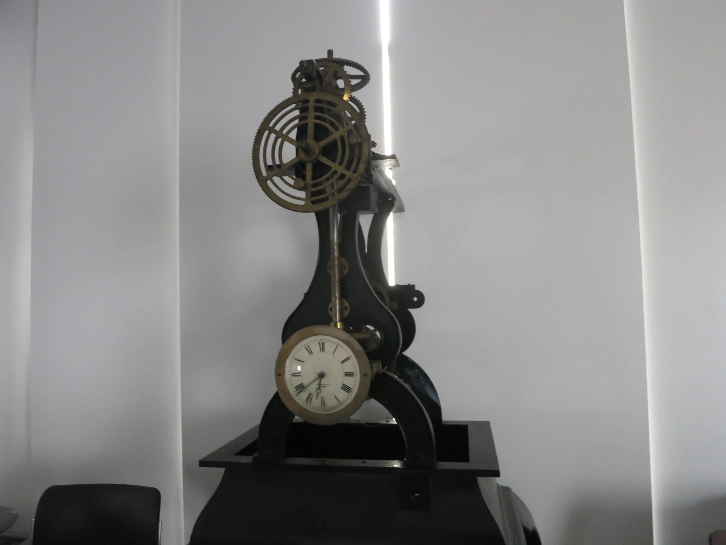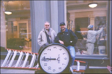 Newly restored clock awaits installation by Ken Neill of The Verdin Company.