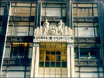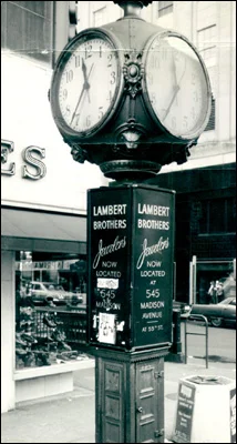 Barthman, located in the sidewalk on the corner of Broadway and Maiden Lane. Aside from the fact that it was specially made for the William Barthman Jewelers, established in 1884, not much else is known for sure about it. It is believed that the Self-Winding Clock Company installed the clock around the turn of the twentieth century, but it dates as far back as 1899 in some accounts. Since installation, it has received several facelifts, including a very durable cover made by NASA from the same glass used on the space shuttle that protects the clock’s face from the continuous foot traffic.
