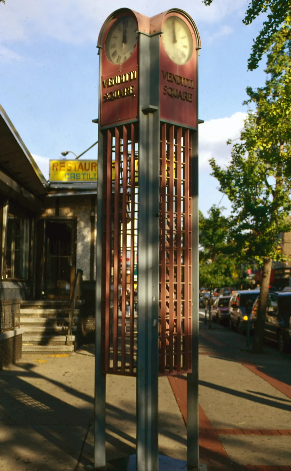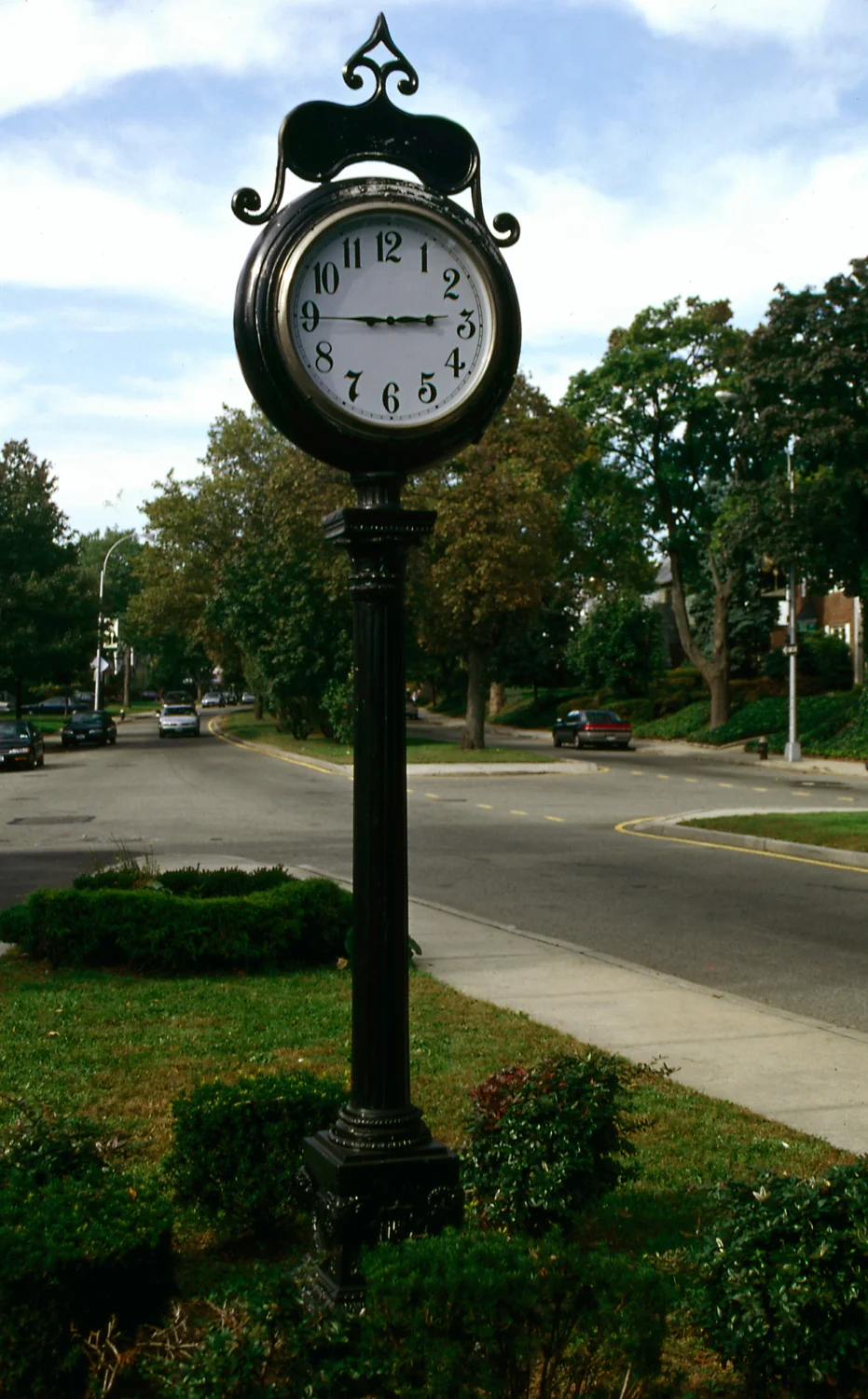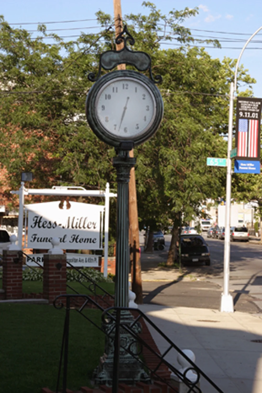 Originally cast in 1907 and installed on Steinway Street in 1922. This clock stood for almost 90 years before being repaired in 2007 by Electric Time Company. In the fall of 2014, this clock was hit by a truck and was knocked over. Re-installation scheduled for Fall 2016.